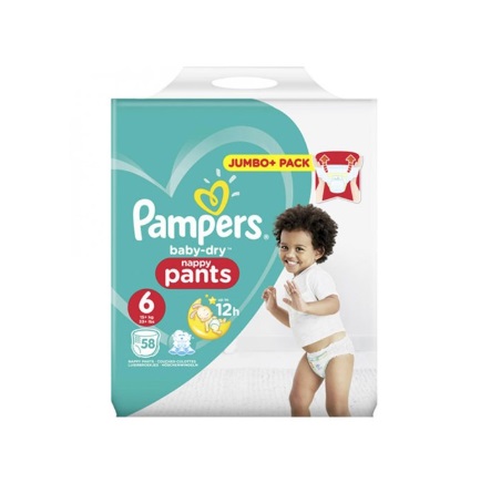 Pampers Baby Dry Nappy Pants Up To 12h 6 (15+ Kg) 58 Nappies